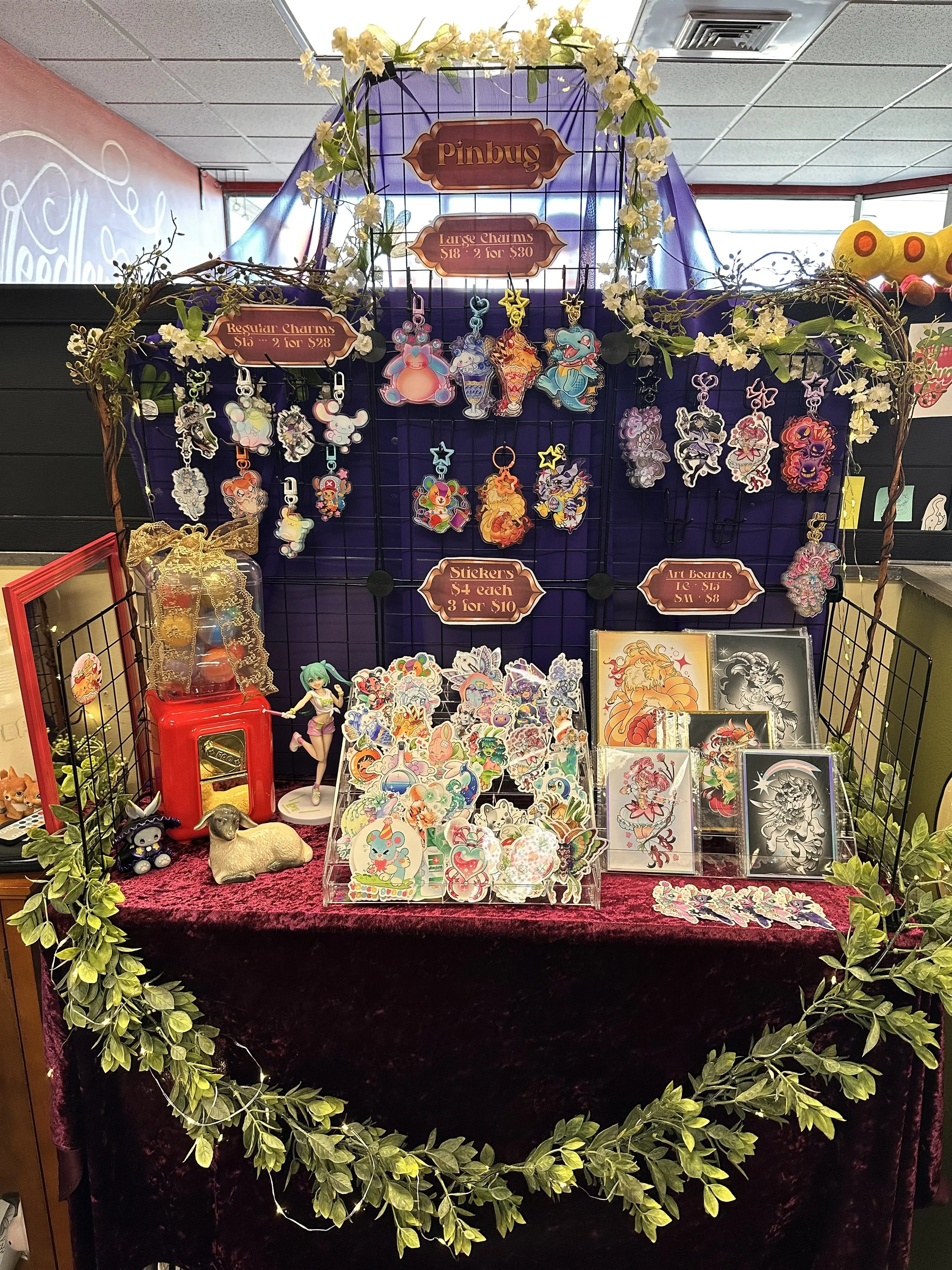 Over the last few years, I’ve been developing merchandise- initially just something people could look at and buy while getting tattooed, but that’s grown into having a small storefront and planning future conventions as not just a tattoo artist, but a vendor as well!